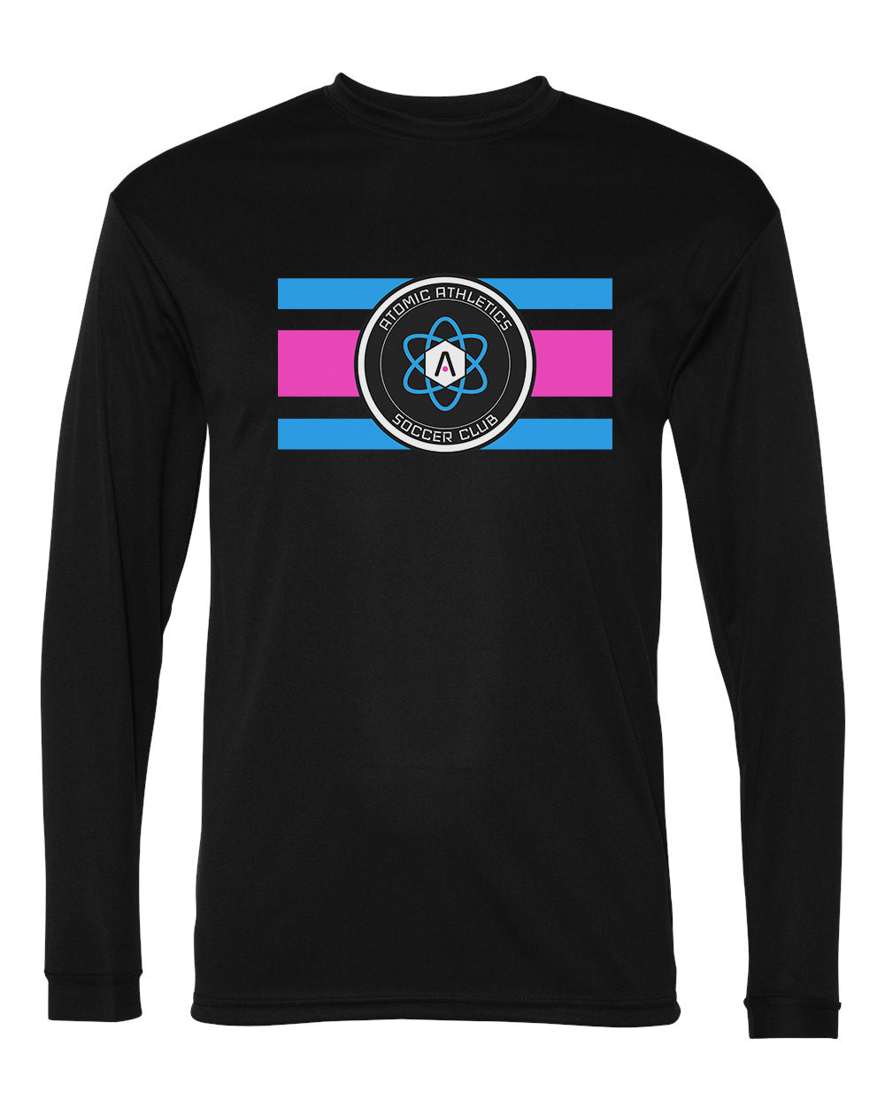 Show your team spirit in style with the Atomic Flag Horizontal Performance Long Sleeve Tee, printed on the performance-ready Team 365 shirt. Featuring the bold Atomic logo in a pink-to-blue ombre design, this tee combines everyday comfort with a clean athletic look that stands out on and off the field.